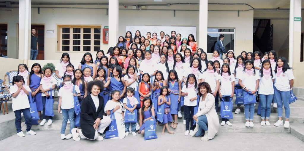 The 92 scholarship recipients of the Manuel Galecio home, which the Board of Charity administers in the Alausí canton, shared a day full of joy, dance, music, and above all, the message of self-improvement brought to them by weightlifter Neisi Dajomes, Olympic Champion, along with her sister Angie Palacios, both of whom were part of this home when they were little and received the support of the Board of Charity.
